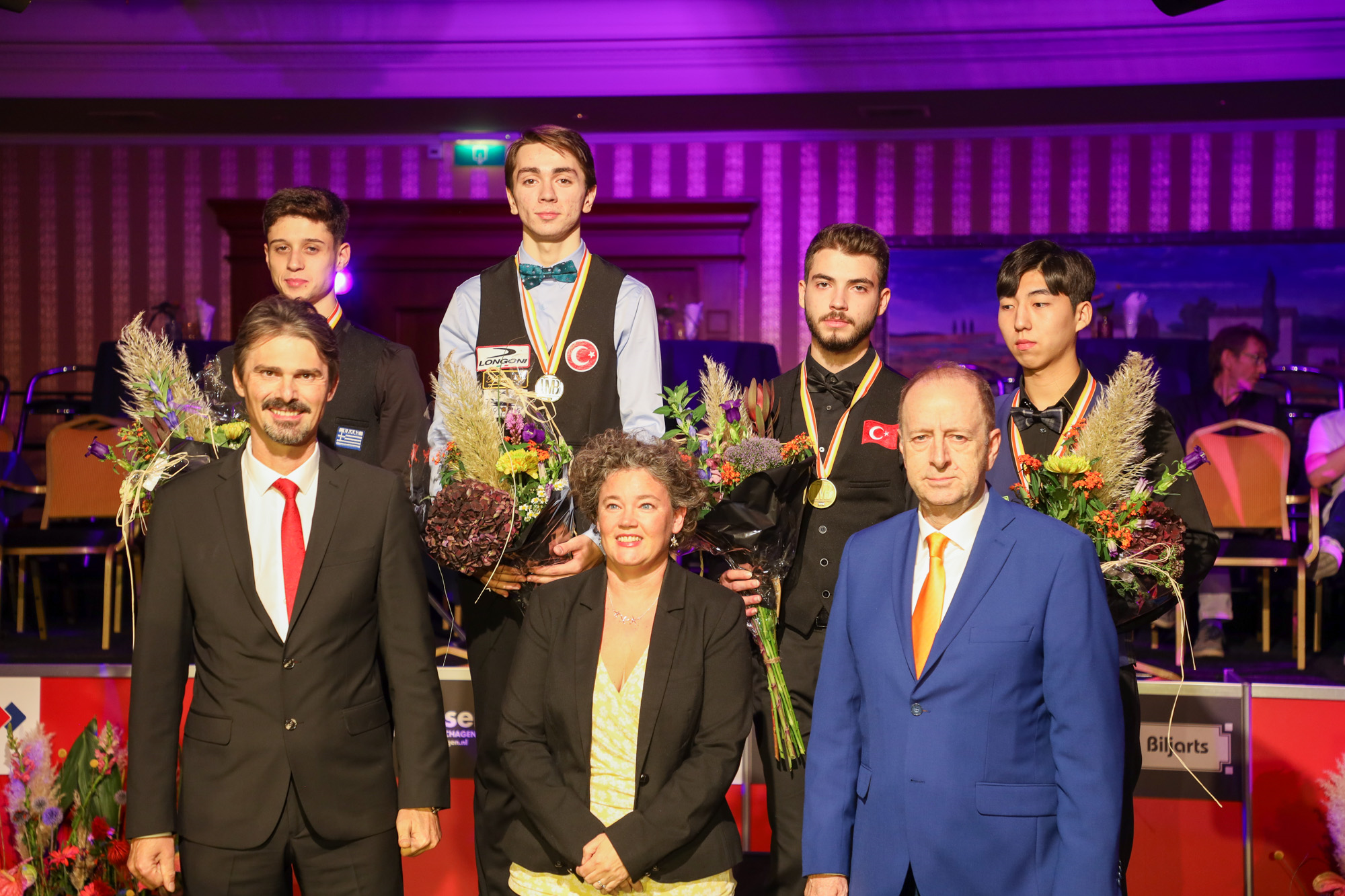 On the first day of the UMB 3-cushion World Championship for Juniors in Heerhugowaard, the Netherlands, the young guys have picked up where the Ladies left off. The tournament is being played in the same venue, on the same tables and in the same format. From eight groups of three, sixteen players will advance to the K.O. stage.