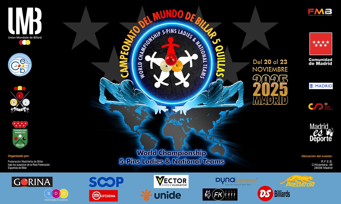 In the heart of Madrid, from November 20 to 23, billiards enthusiasts can gather at the headquarters of the Royal Spanish Billiards Federation to witness the best players in the 5-pin discipline. Undoubtedly, a spectacle of precision, ingenious solutions, tactical play, and the excitement of the final shot.