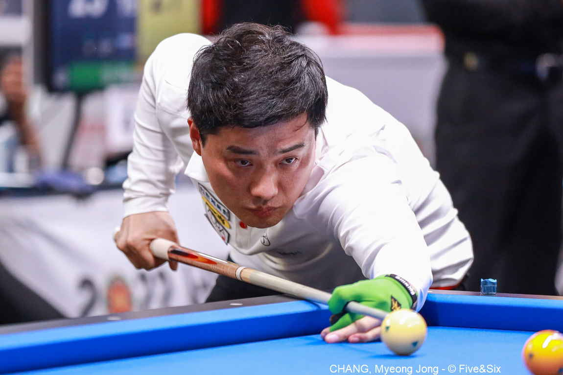 Gwendal Maréchal from France had the dream tournament and the dream start to his semifinal: he made 28 in 10 and had a big lead over Cha at the halfway point. But the Korean 3-cushion instructor fought back with a run of 15 and was the coolest in the closing innings: 50-48 in 24.