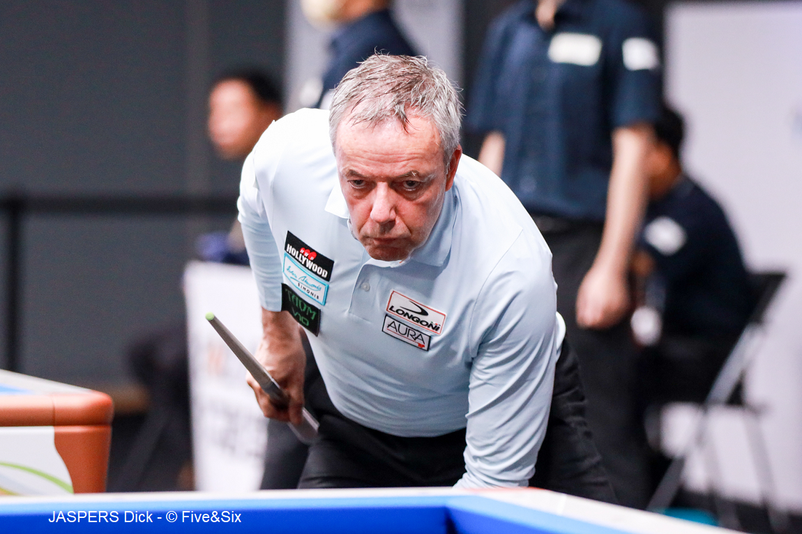 Jaspers, as so often, had a miraculous escape against Jeremy Bury (50-48 in 29), thanks to a well-timed run of 11. Dani Sánchez was rock-solid against Jung Han Heo (50-37 in 28). Eddy Merckx ended the dream of tournament revelation Phuong Vinh Bao (50-34 in 30). Gwendal Maréchal, who had slipped into the last 16 through the back door, eliminated none other than Marco Zanetti: 50-44 in 28.