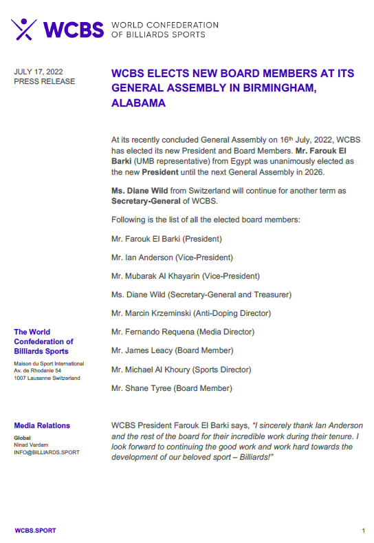 Farouk Barki, new President of the WCBS. Diane Wild and Fernando Requena continue with their commitments on the board. Published on: July 20, 2022 Share: Twitter Facebook Copy Link