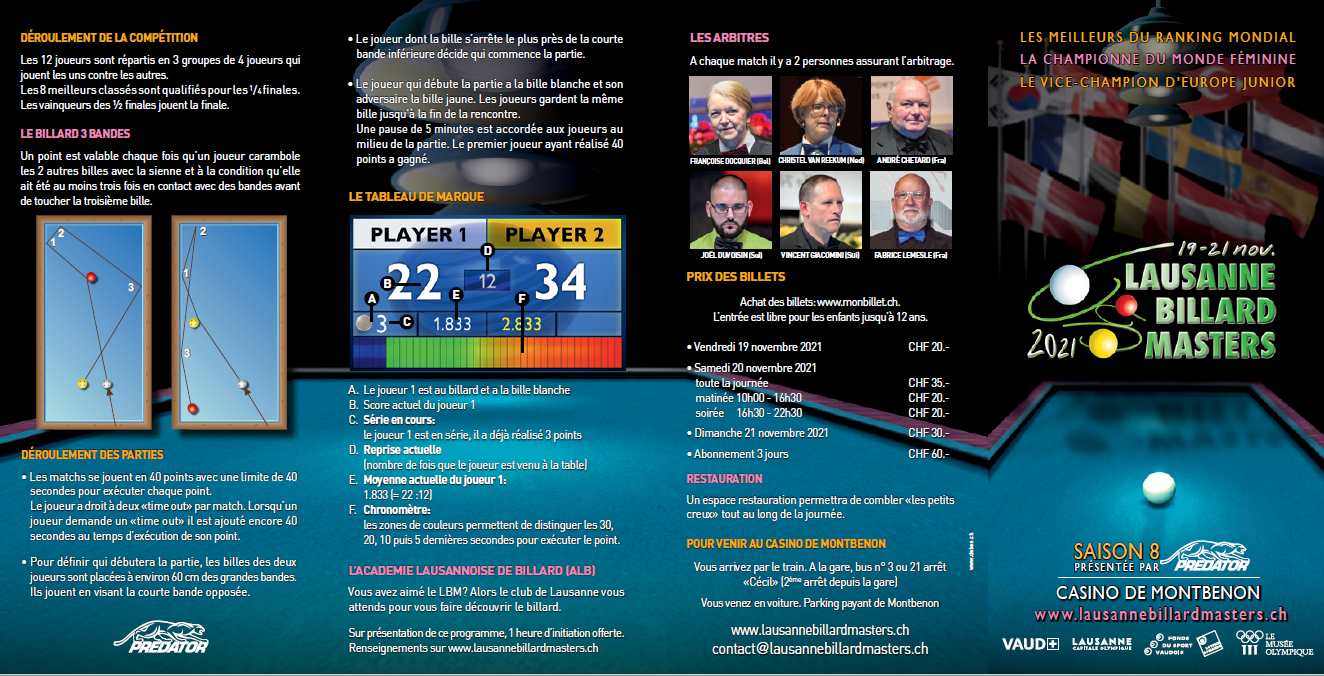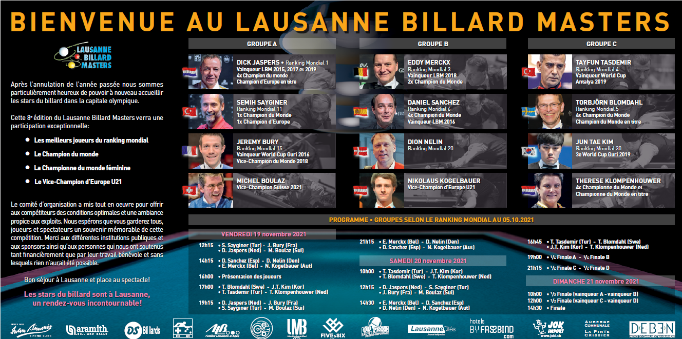 Next Friday 19th LAUSANNE BILLIARDS MASTER start in Casino de Montebeon in the Olimpyc Capital Lausanne. for first time Swiss TV will be present on this tournament.