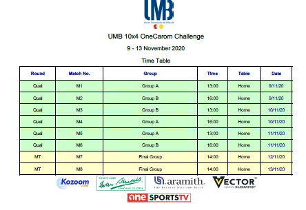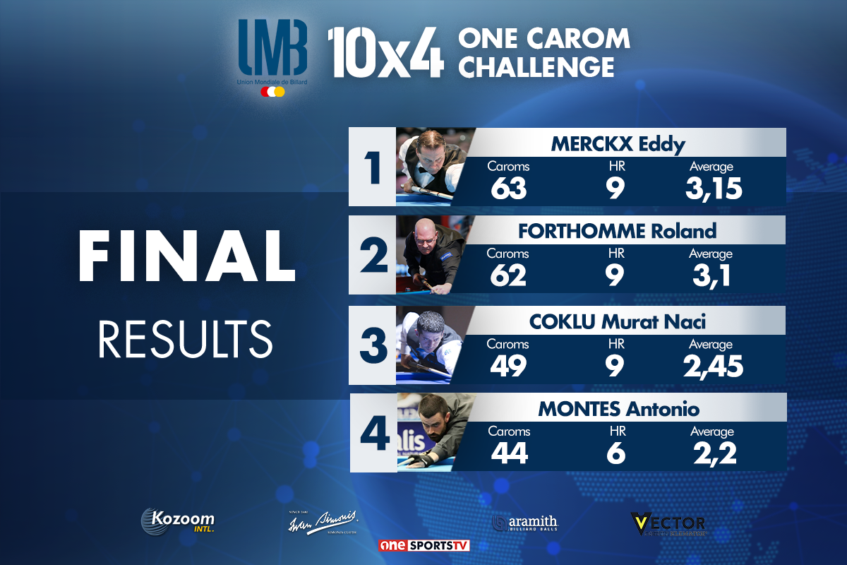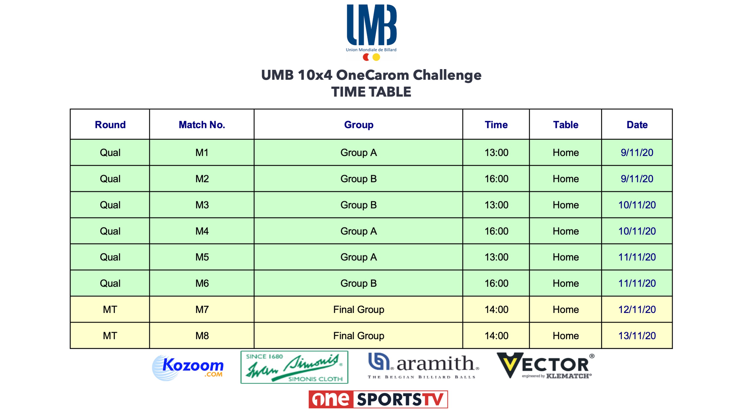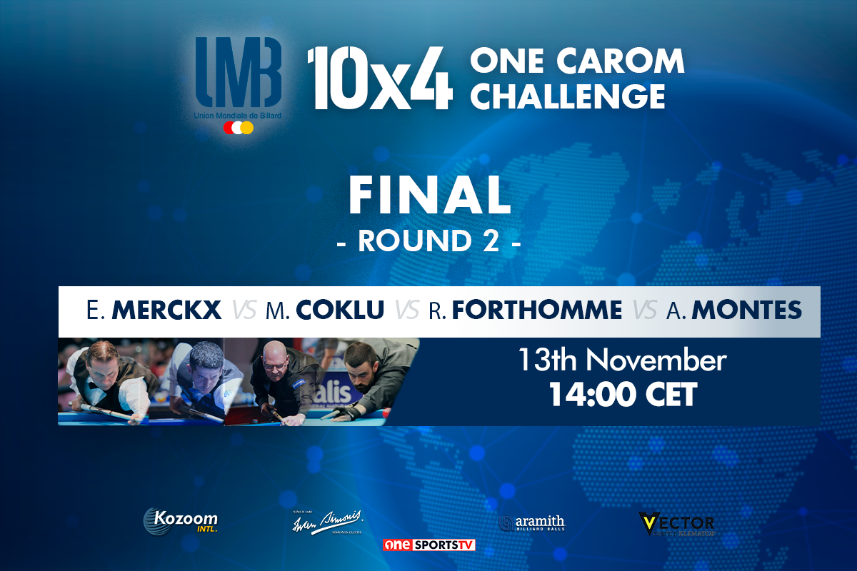 Again on Kozoom, OneCaromTV, Facebook and YouTube will be able to follow this tournament. that beguins next November 9th , the third of the virtual 10x4 ONE CAROM CHALLENGE .