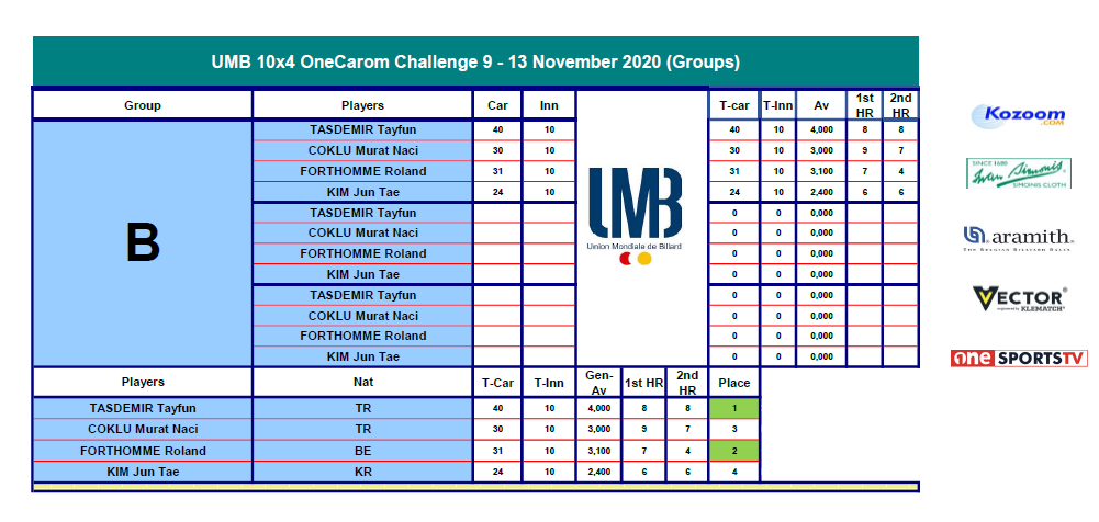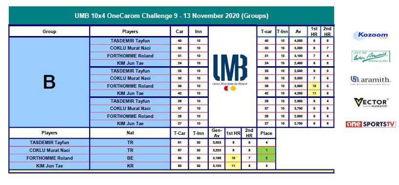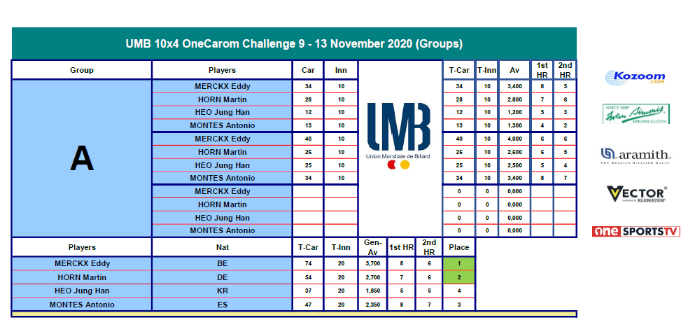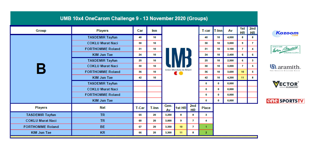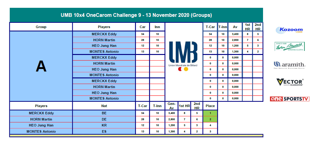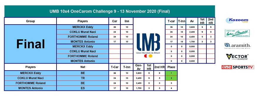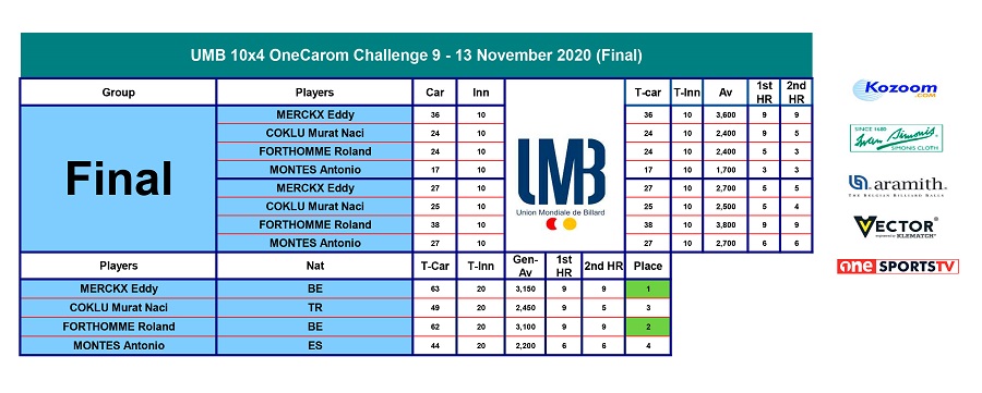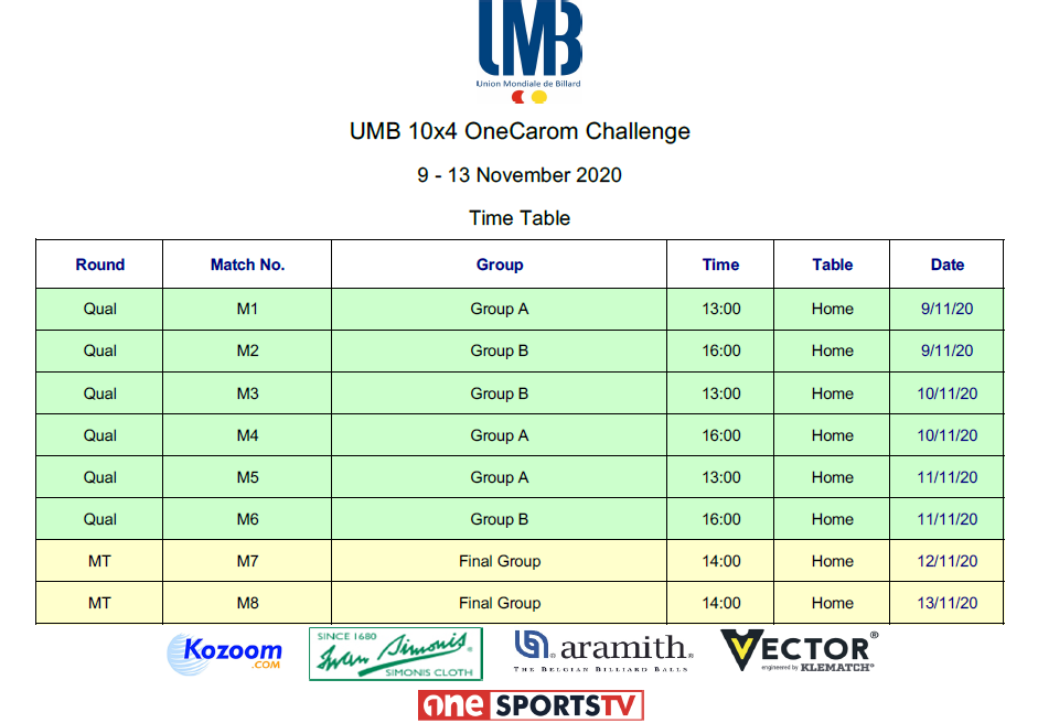 Again on Kozoom, OneCaromTV, Facebook and YouTube will be able to follow this tournament. that beguins next November 9th , the third of the virtual 10x4 ONE CAROM CHALLENGE .
