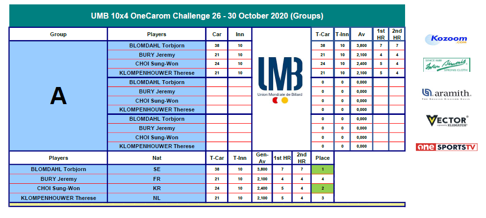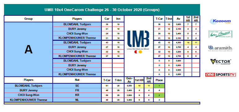 BLOMDAHL Torbjorn VS BURY Jérémy VS CHOI Sung-Won VS KLOMPENHOUWER Therese