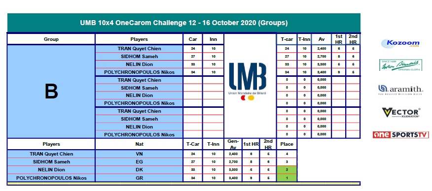 16:00 CEST - QUALIFICATION ROUND 1 [GROUP B] | UMB 10X4 One Carom Challenge