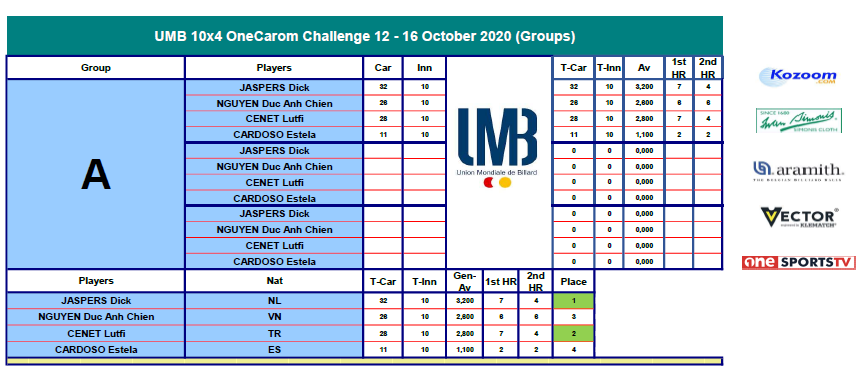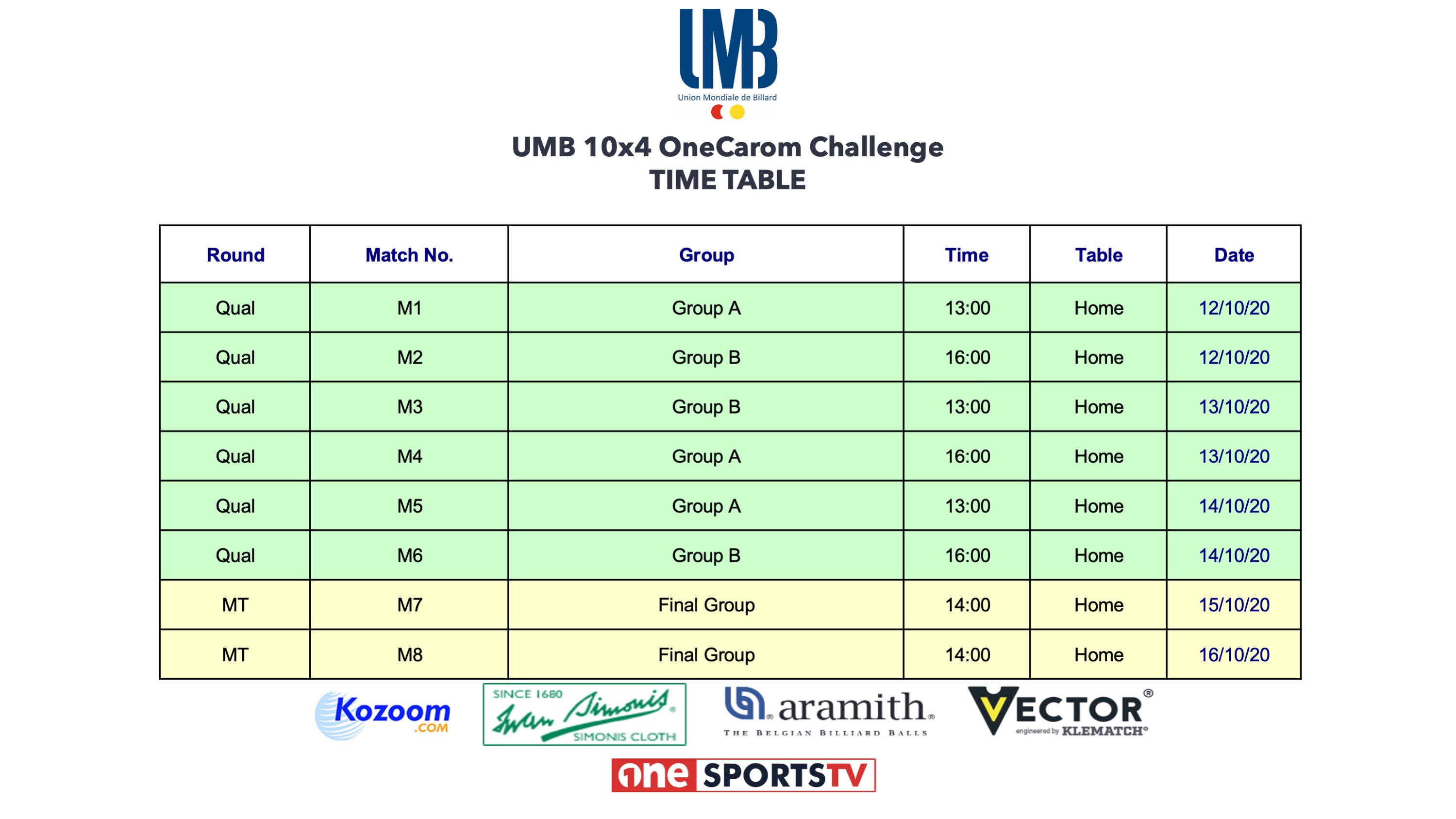 13:00 CEST - QUALIFICATION ROUND 1 [GROUP A] | UMB 10X4 One Carom Challenge
