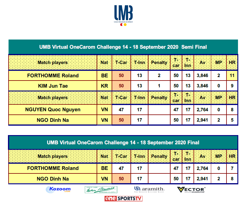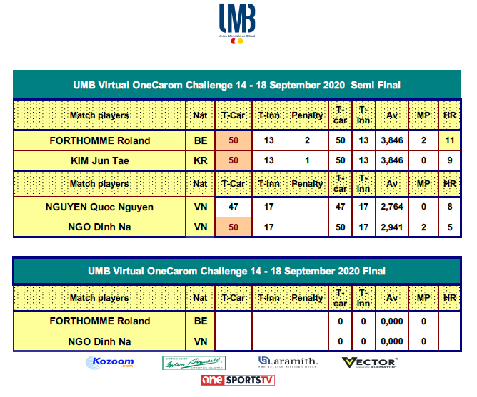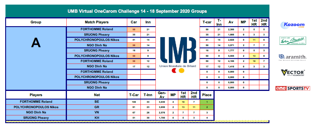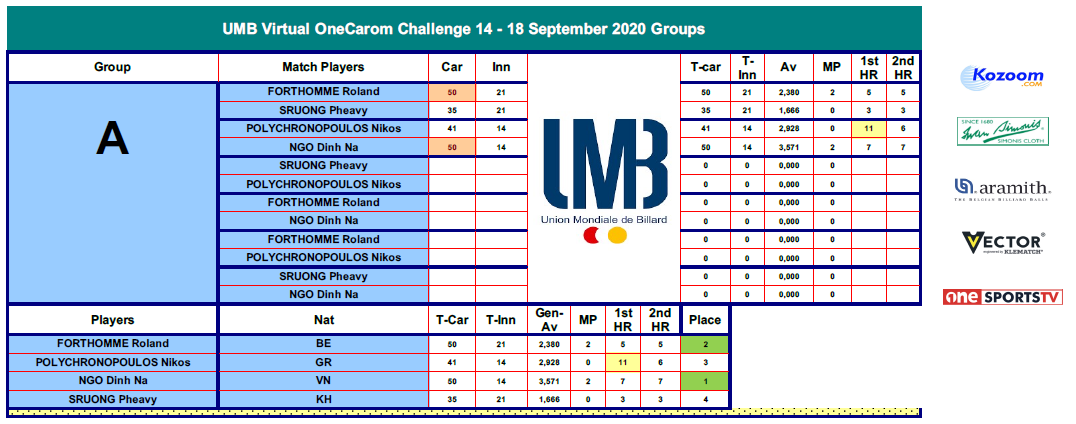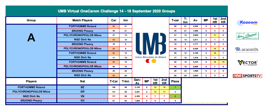 18:00 CEST - FORTHOMME Roland VS NGO Dinh Nai [GROUP A] | UMB OneCarom