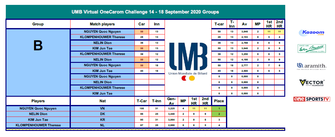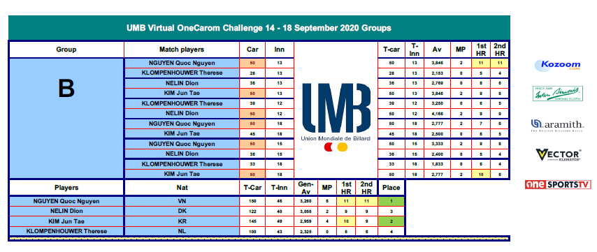 10:30 CEST - KLOMPENHOUWER Therese VS NELIN Dion [GROUP B] | UMB OneCarom
