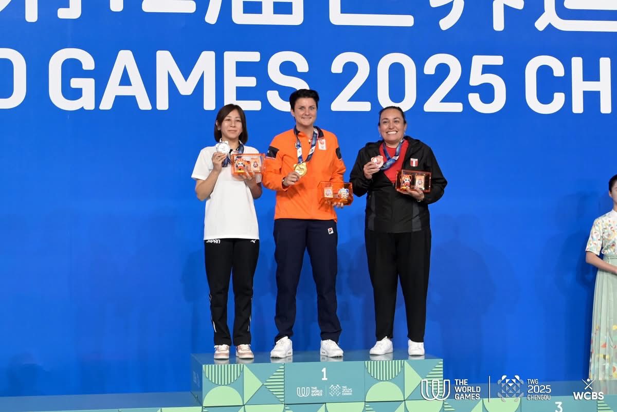 Three of the total seven gold medal decisions were on the schedule today in the billiards competitions at the World Games in Chengdu, China. Standing on the top step of the podium were Therese Klompenhouwer (The Netherlands/Women’s 3-Cushion), Yulu Bai (China/Women’s 6-Reds Snooker), and Yu Han (China/Women’s Pool).