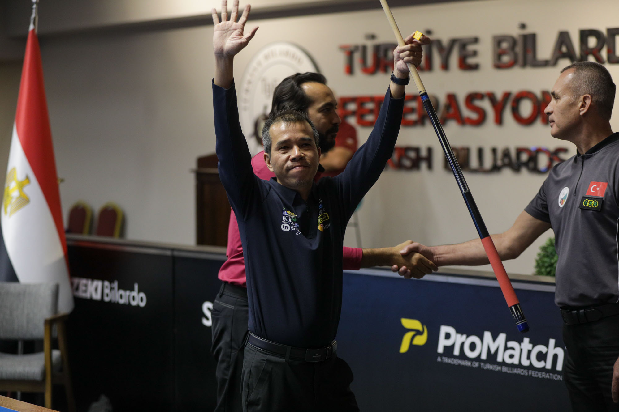 On the third day of the Ankara World Cup, the battle for survival was hard, unforgiving. Quite a few strong players missed out on advancing to the Q-round, such as Long Nguyen Chi, Birol Uymaz, Sergio Jimenez and Alexander Salazar. Jean Paul de Bruijn excelled in a tough group with a 35 in 12 and 1.794 over his two matches, making him the best of the bunch. Escape artist Mehmet Aksoy (two wins with 30-29 yesterday) did it again: he won his group after a 35-34 win over Japan’s Atsushi Kiyota, having trailed most of the match.