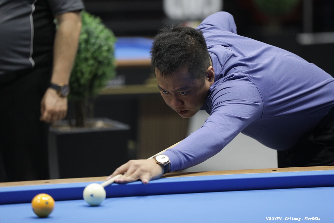 Quyet Chien Tran, who came ever so close to winning the overall World Cup last year, had to deal with Jung Han Heo in the last 16. The very dangerous Korean had made 40 in 8 yesterday, with a run of 22. Tran kept his cool and got the job done at 50-41 in 21/20 innings. The quarterfinal against Jeremy Bury took a few more innings, and Bury couldn’t shine like he did earlier in the week: 50-35 in 29/28.