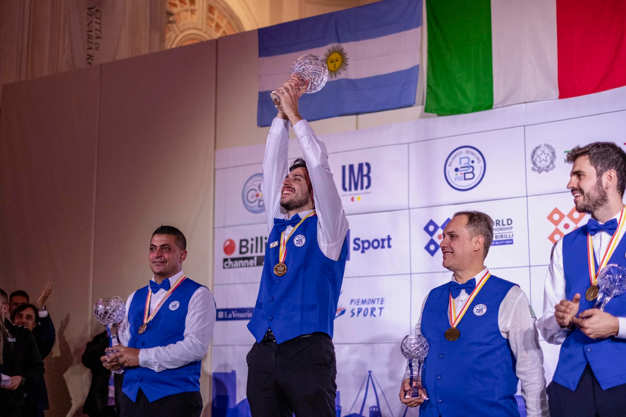 In the first under22 world championship of this specialty, the title was won by the Italian player Emanuel Cucchiara against the Argentine player Santino Lopez, the only one who broke the Italian hegemony on the podiums of these championships.