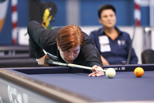 In group A, H.E. Kim booked two solid wins to advance, averaging 0.781. Group B, as expected, was won by five-time champion Therese Klompenhouwer. She used 24 and 21 innings for 25 points, thus averaging 1.111.