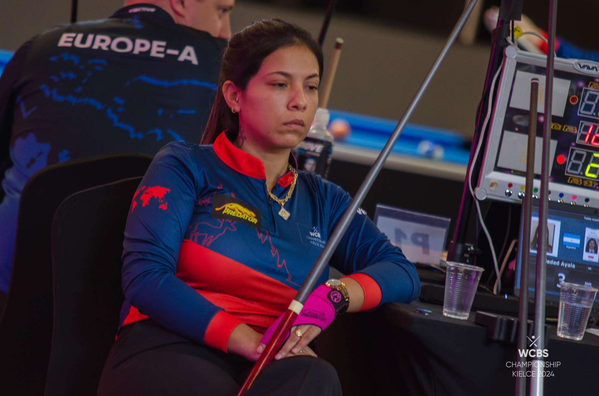 The afternoon session was opened by the Americas - Europe A match, which ended with a score of 17:15 for the Americans. In this match, both teams scored four points in almost every discipline, winning and losing one match each. And only in the 10-ball Pool did the Americas players proved to be slightly better, as Peruvian Gerson Martinez defeated Estonian Denis Grabe, and Argentinian Soledad Ayala drew with Portuguese Sara Rocha. The final score in this match ruined the Europeans' chances for the knockout stage.