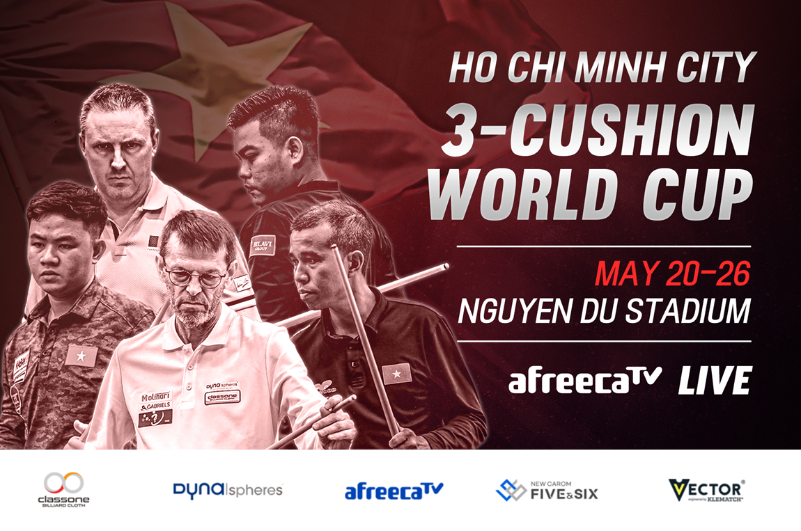The tables in Ho Chi Minh are Hollywood, the balls are Dynaspheres and the cloth is ClassOne B2 Black. The standard ranking points apply: 80-54-36-26-18-1—8.