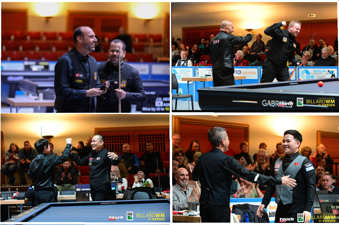 Belgium and Vietnam also needed a Scotch Double play-off, after Tran had lost to Merckx and Bao had beaten Philipoom. Vietnam won the lag and ran 13 (!) points from the spots, leaving Belgium gasping for breath.