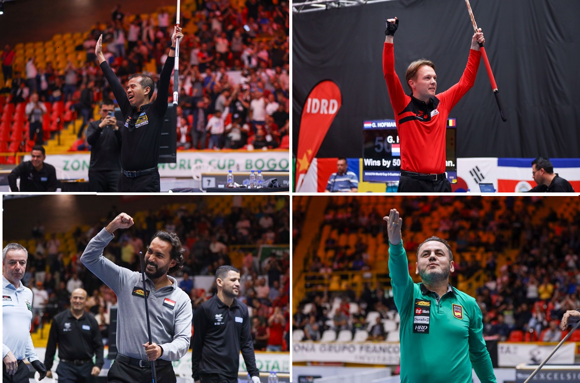 With the majority of the PPPQ group winners over 1.000 average on day 1, the Bogotá World Cup started on a high level. Alain Hernandez was the best of the lot, with two wins and 1.538.