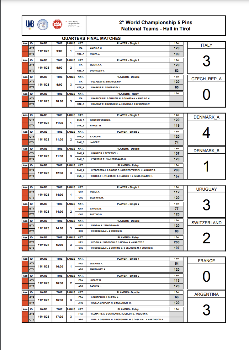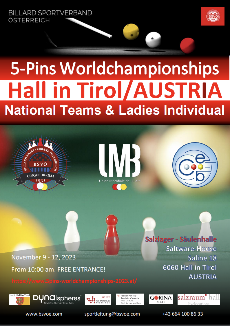 16 teams have started today the 5-Pins World Championship for national teams presented by the Union Mondiale de Billard in Hall in Tirol (Austria) with the participation of 12 countries until next Sunday, November 12.