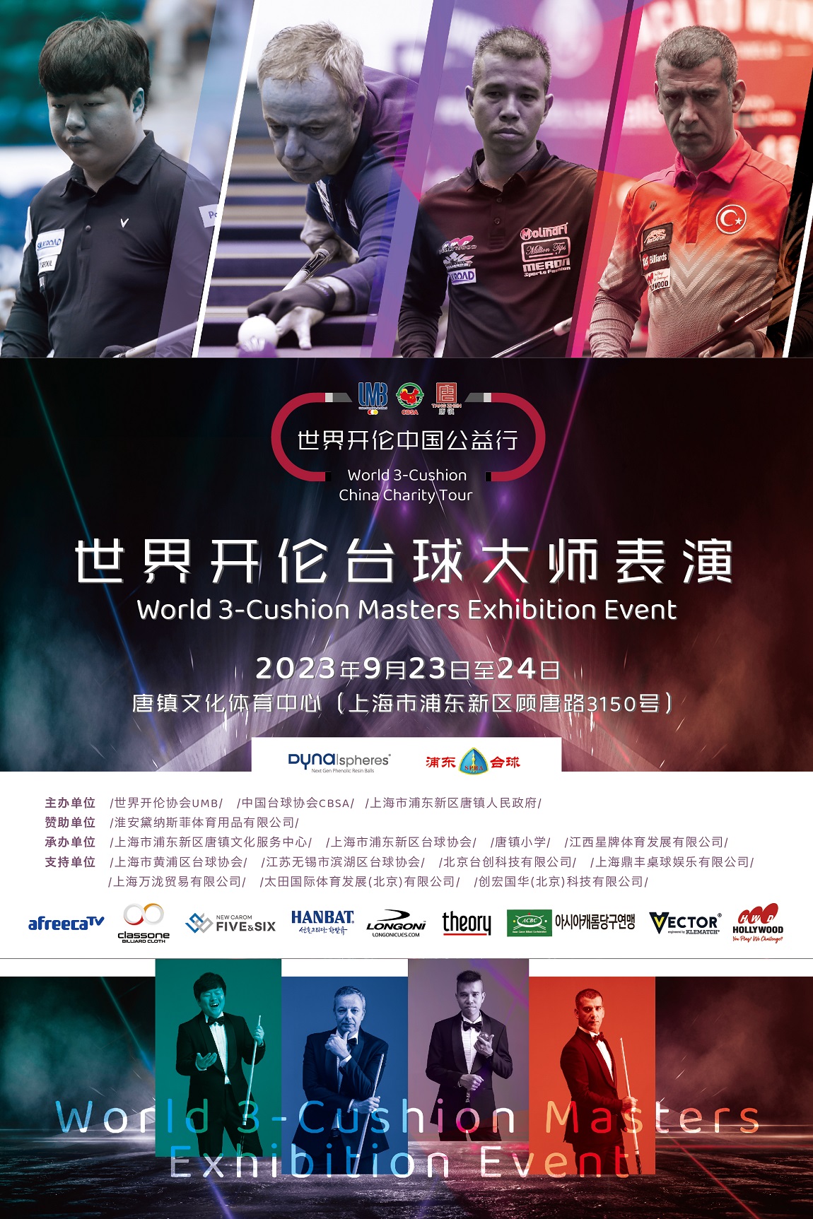 UMB thanks Hollywood, Longoni, Hanbat, Theory, Classone and Dynaspheres, as partners in this Shanghai Event, for their contribution in the realization of this most important 3-Cushion promotional event in China.