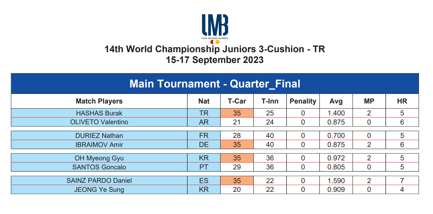 Today the semifinals and final of the 2023 Junior World Championship are being played in Ankara, the battle has been tough, the averages are very high and the games are generally decided in the last innings.
