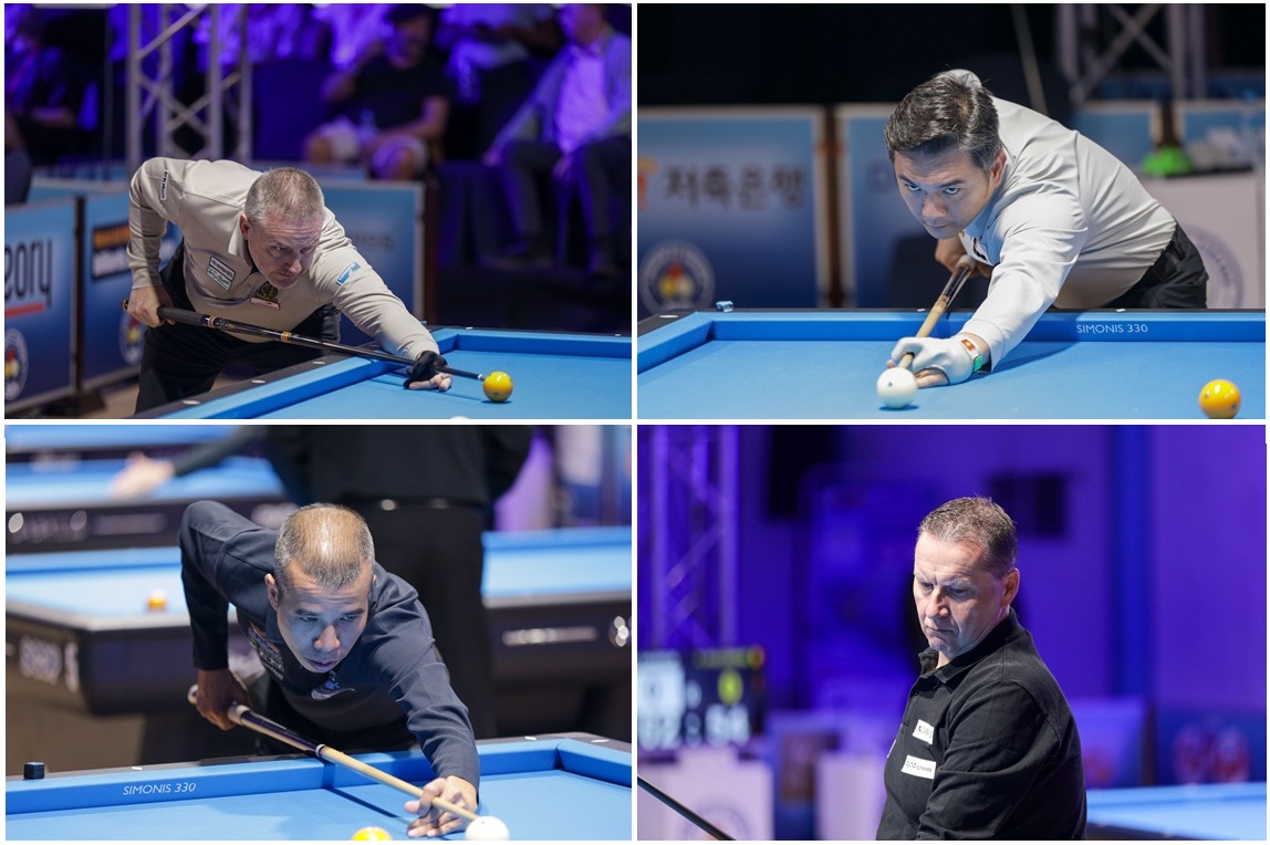 Thanh Luc Tran had maybe made the strongest impression on Day One and Day Two, but Sameh Sidhom, Eddy Merckx and Frédéric Caudron also looked eager to win this title. And of course, Jaspers, who as we know is never quite out of it until the ref says he is. The semifinals on Sunday were a double confrontation between Belgium and Vietnam, with both countries winning and losing one. Thanh Luc Tran was eliminated by Caudron: 50-42 in 28. Eddy Merckx lost his semi to Quyet Chien Tran: 50-23 in 22/21.