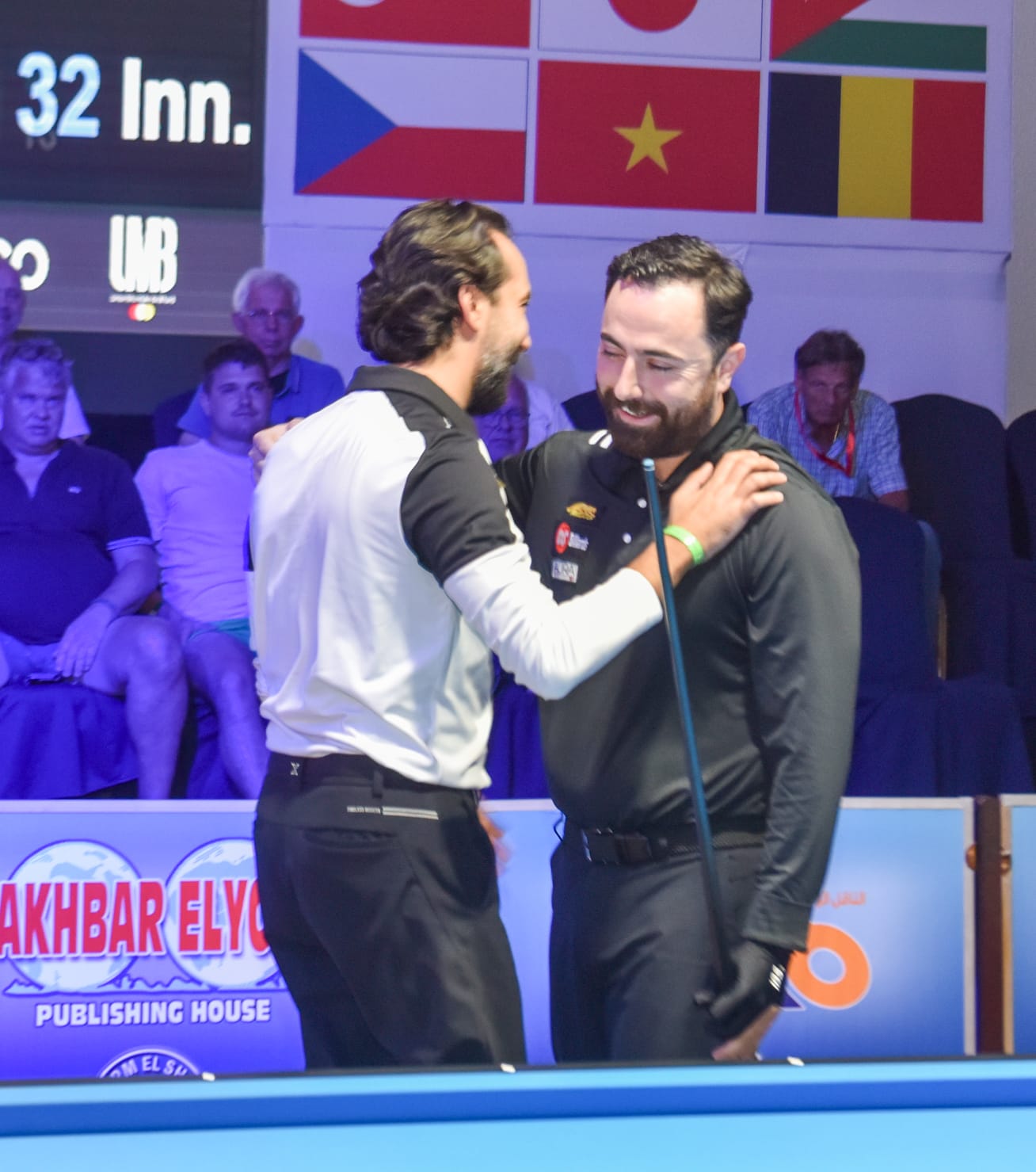 It was not the only group that was decided on a knife’s edge. The “Belgian” group D developed into a three-way fight between Caudron, Merckx and Ceulemans, all with two wins. Ceulemans had more four more caroms and used four fewer innings, which meant an exit for Merckx.
