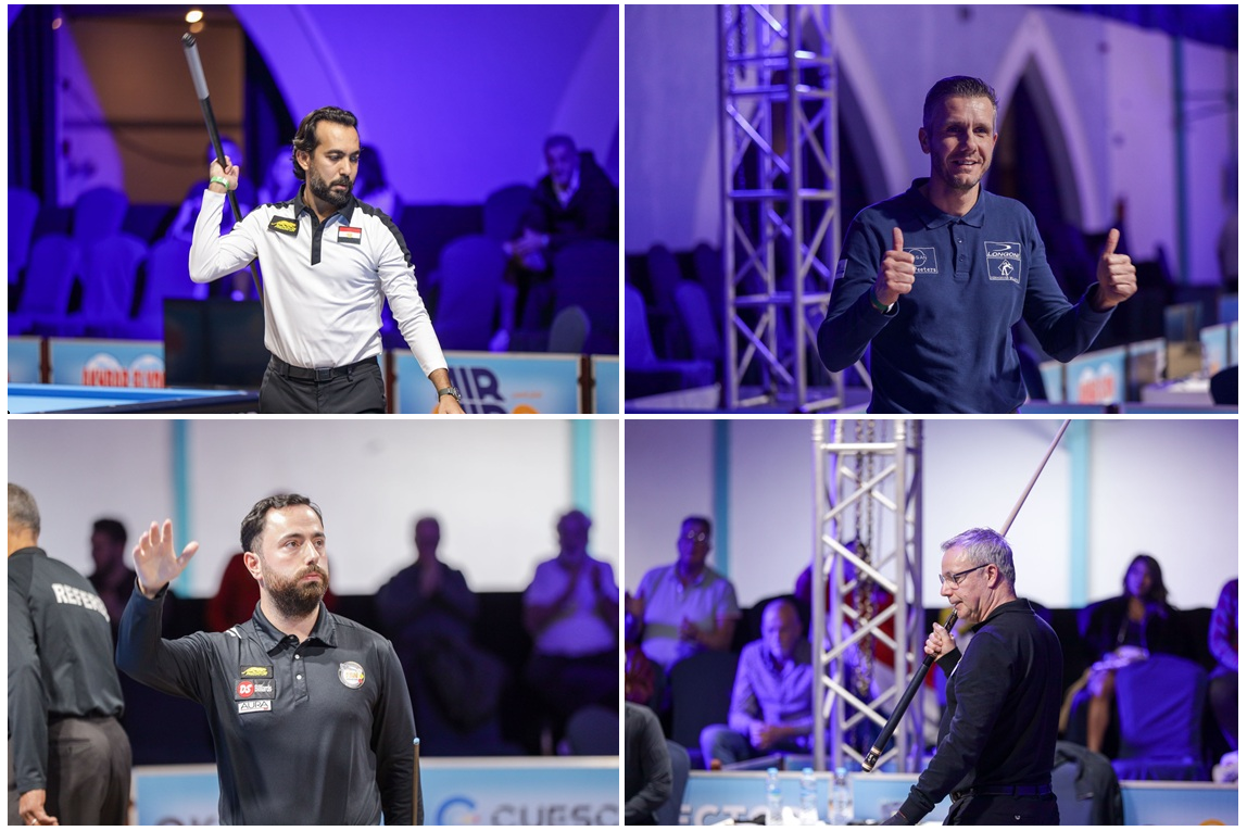 Berkay Karakurt completes the foursome of the final day. The younger of the two Karakurt brothers had a surprisingly easy win over Ruben Legazpi, who had depleted his batteries: 50-24 in 32. Next came a second confrontation with Marco Zanetti. They had met in the group stage, Karakurt the winner. And again in the round of sixteen, the Turk had the upper hand: 50-29 in 28. Zanetti had already dug deep in his epic match against Caudron (50-47 in 17), so maybe fatigue was a factor. Caudron, the reigning world champion, looked imperious at times, but Zanetti is his kryptonite.