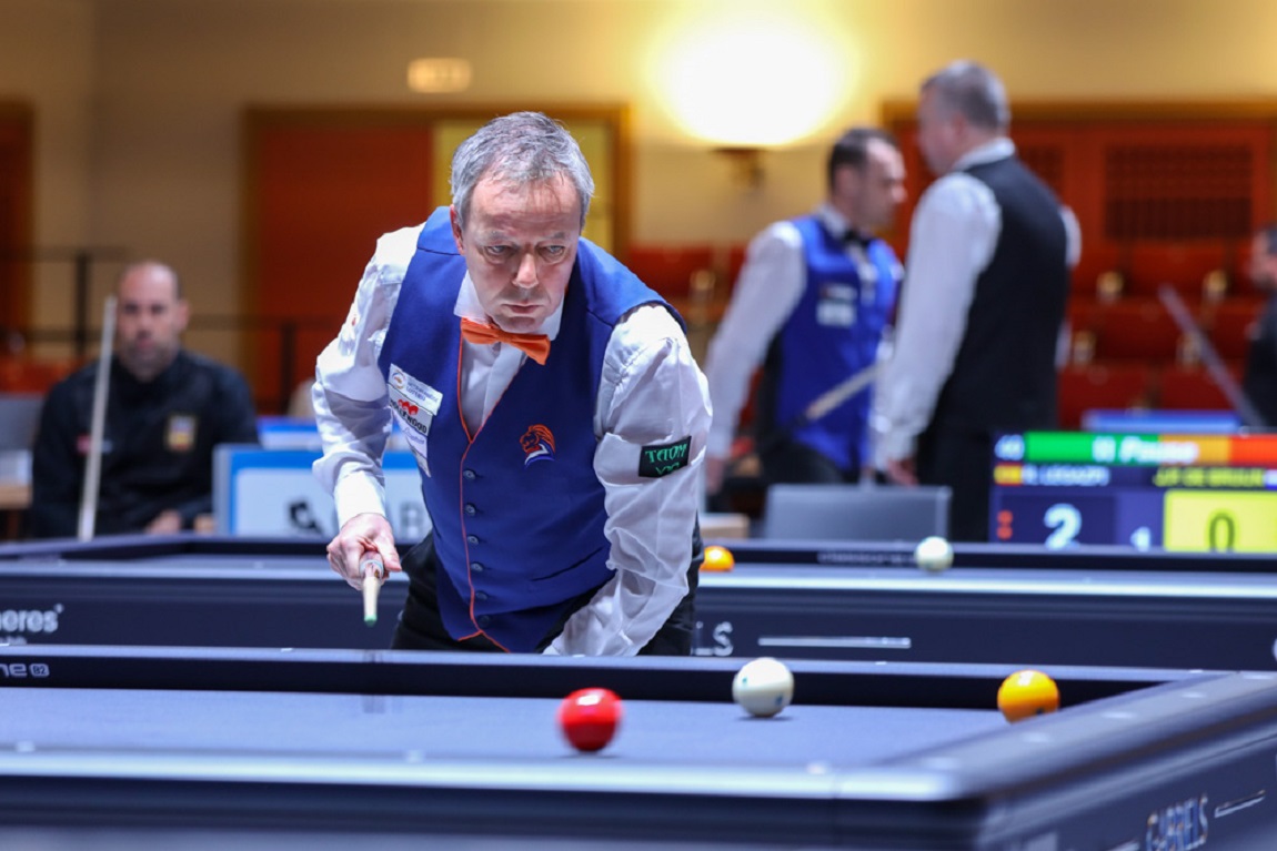 The match of the day in the World Championship for National Teams was the meeting between Dick Jaspers and Dani Sánchez in Group C. The world number one put a run of 20 in the record books and won 40-25 in 13 innings. Spain had no problems with Jordan, the Netherlands drew with France. The two favorites, Spain and the Netherlands will advance to the quarterfinals. France and Jordan are eliminated.