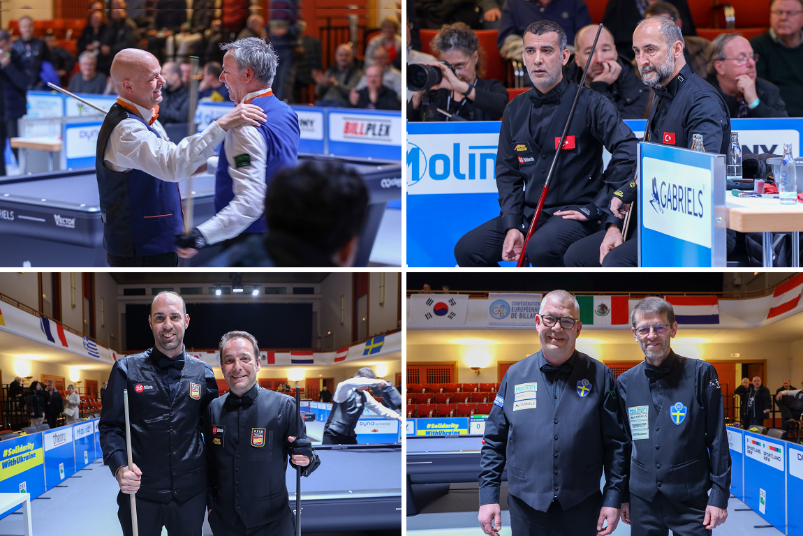 In the final between Sweden and Turkiye, Semih Sayginer was on fire. He ran off to a 20-5 lead in just 5 innings. Blomdahl made a great comeback (23-25) but Sayginer answered with another run of seven. The match ended on a high level: 40-29 in 13 innings. Michael Nilsson was beaten for the first time in the event, when Tasdemir came from behind with a run of 14, and a few innings later produced the winning point for his team and country: 40-29 in 17 innings.