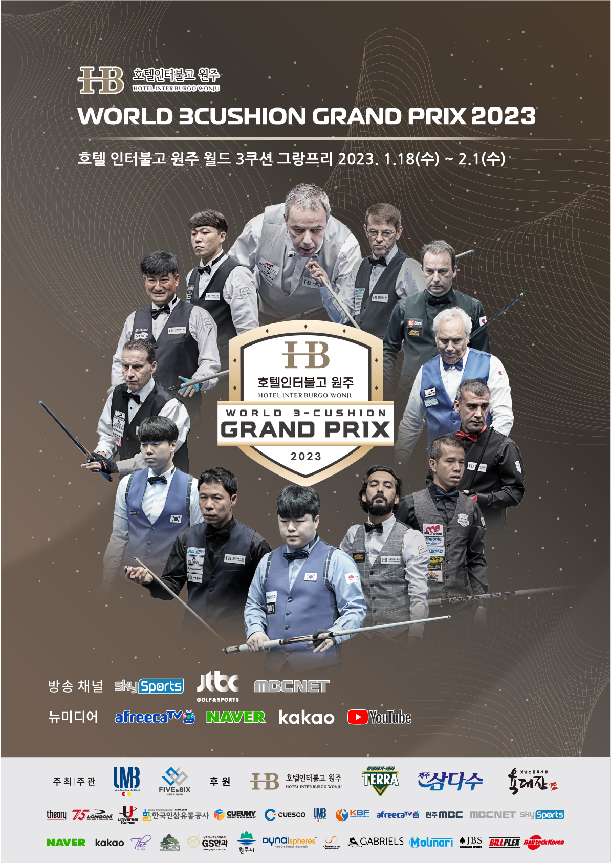 THE UMB World 3-Cushion Grand-Prix, “HOTEL INTERBURGO”, will be held from January 18th to February 1st , 2023, in the Korean city of WONJU.