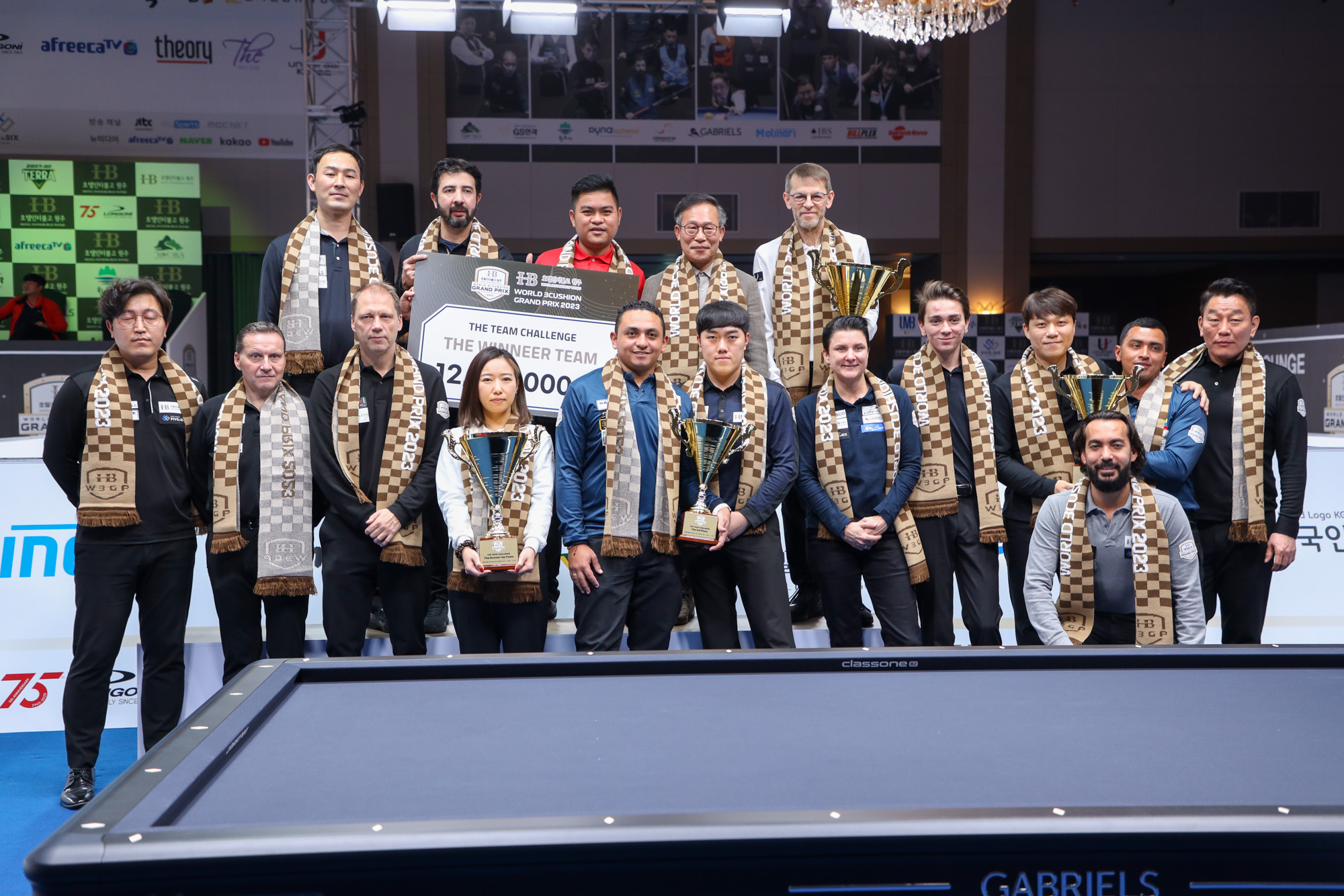 .For the Team Challenge of Hotel Inter Burgo World 3-Cushion Grand Prix 2023, the team Blomdahl got the first winner of the team challenge.